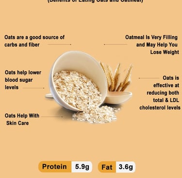 The soluble fiber in oats, known as beta-glucan, helps reduce cholesterol levels, promoting a healthy heart. Studies have shown that regular consumption of oats can lower total and LDL cholesterol, reducing the risk of heart disease.